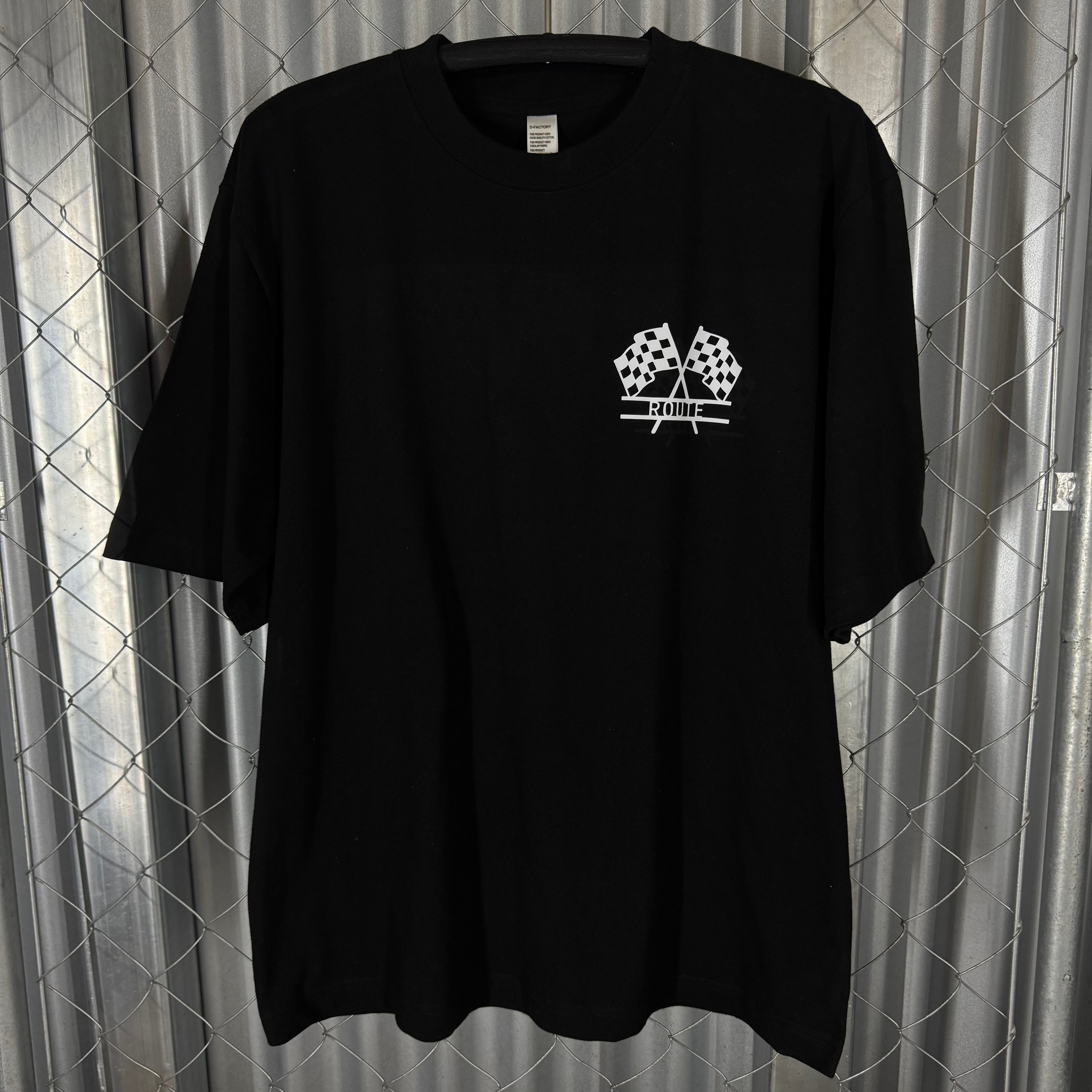ROUTE Checkered Flag Tシャツ Black X White BIG-T