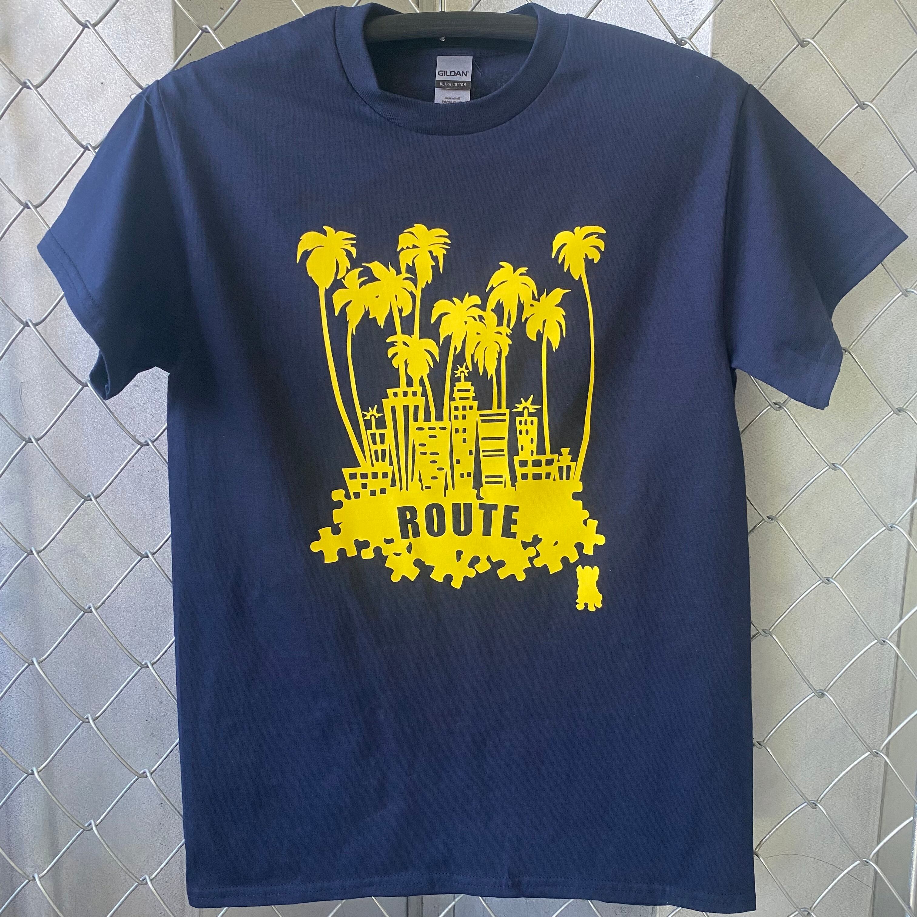 ROUTE Palm Tree Tシャツ Navy X Yellow Sサイズ