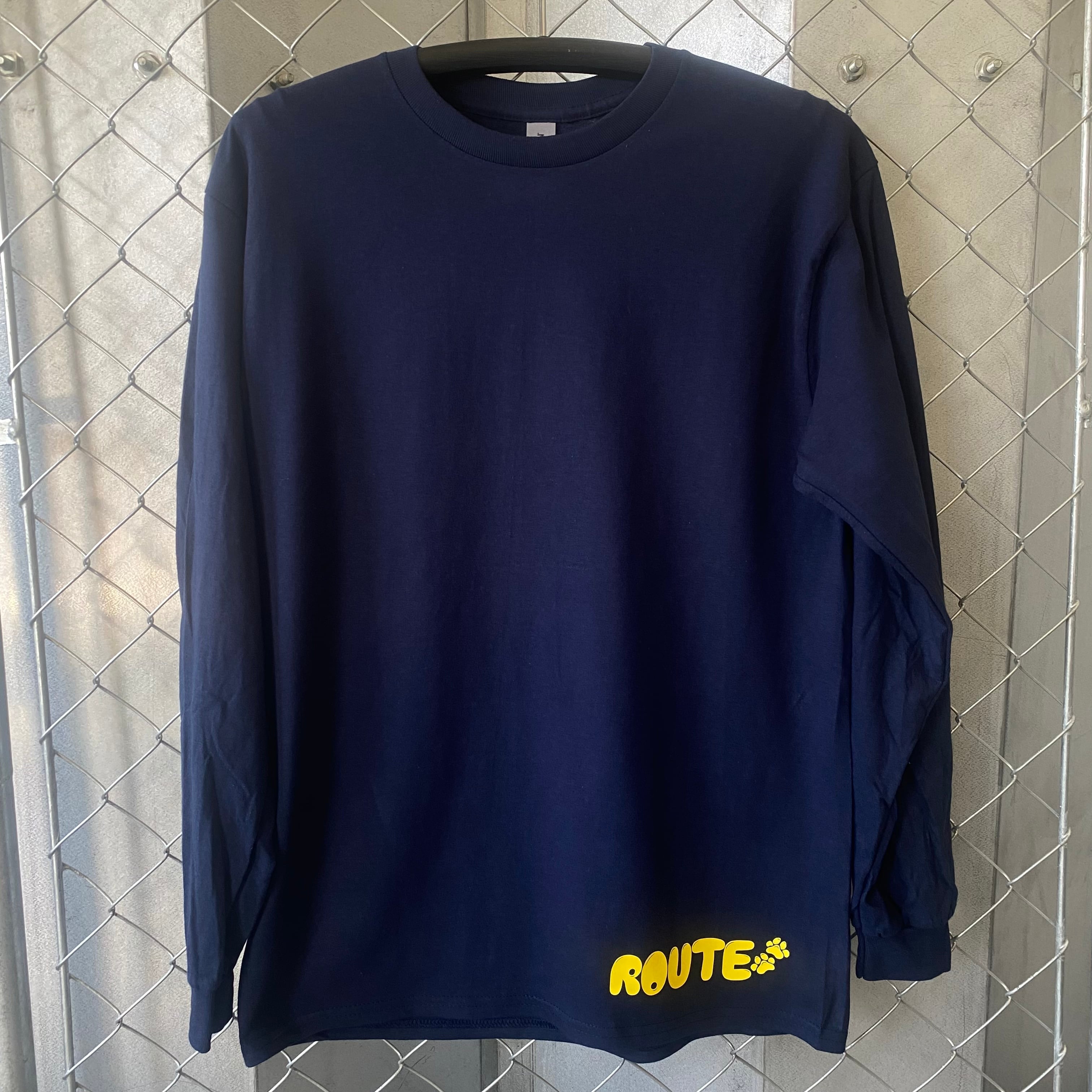 ROUTE Foot Prints Long Sleeve Tシャツ Navy X Yellow