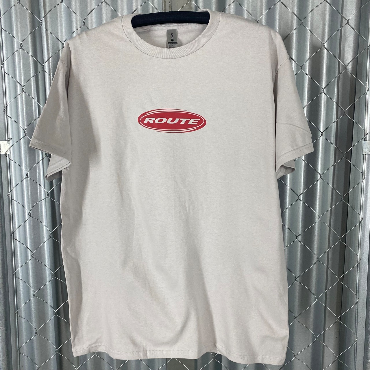 ROUTE Oval Tシャツ Ice Gray X Red