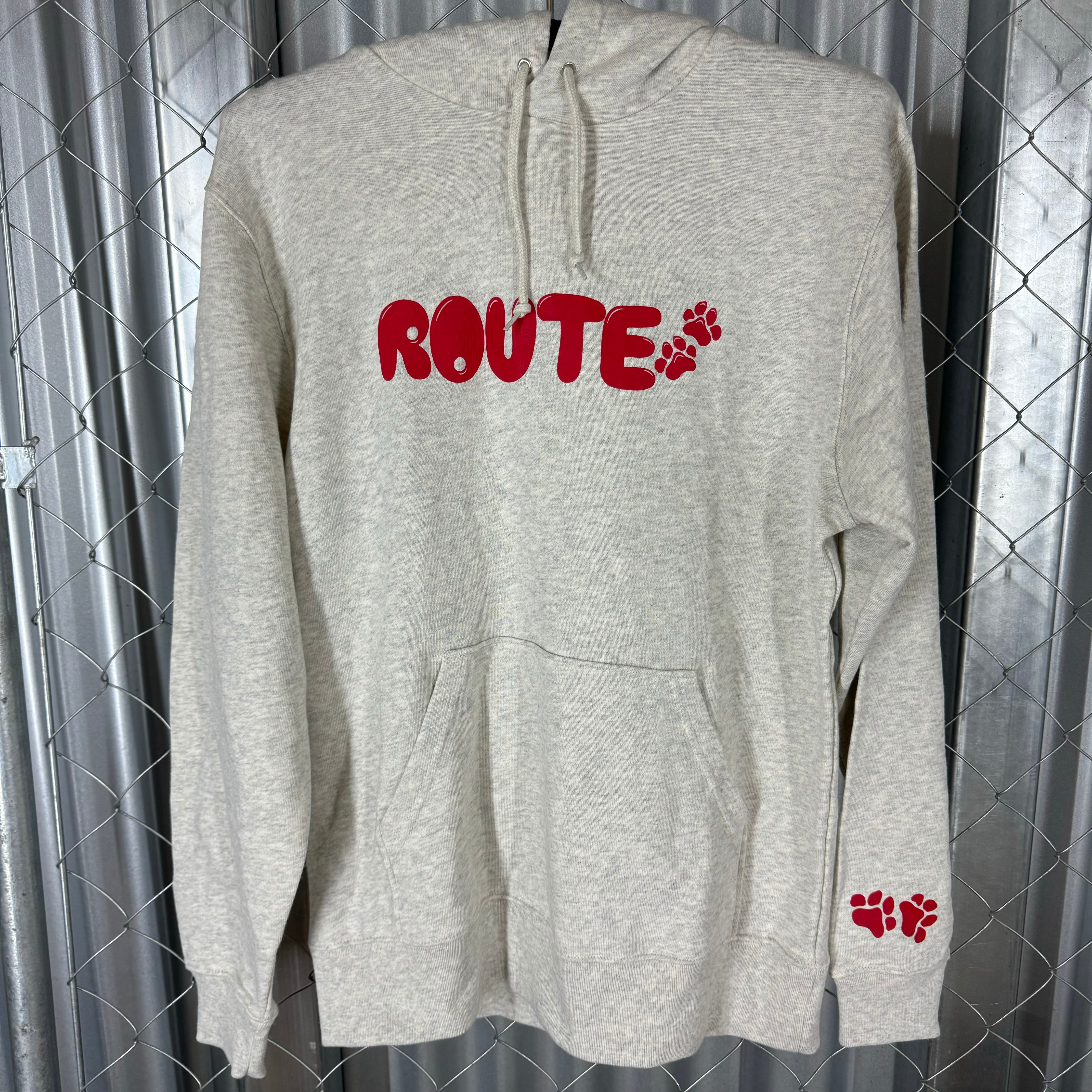 ★ ROUTE FootPrints & ROUTE DOG & OLD ENGLISH Light Gray X Red パーカー ★